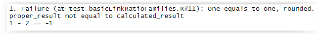 The long and short of this is ... the unit test results summary will not tell you that you have a type problem if you have a type problem. Instead, you'll get a silly A - A == 0 failure message. So, the proper code – for those not familiar with R: